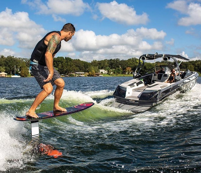 The latest development in wave-related fun, wakefoiling pushes the boundaries of riding behind the boat…or jet ski…or just about any vessel for that matter.